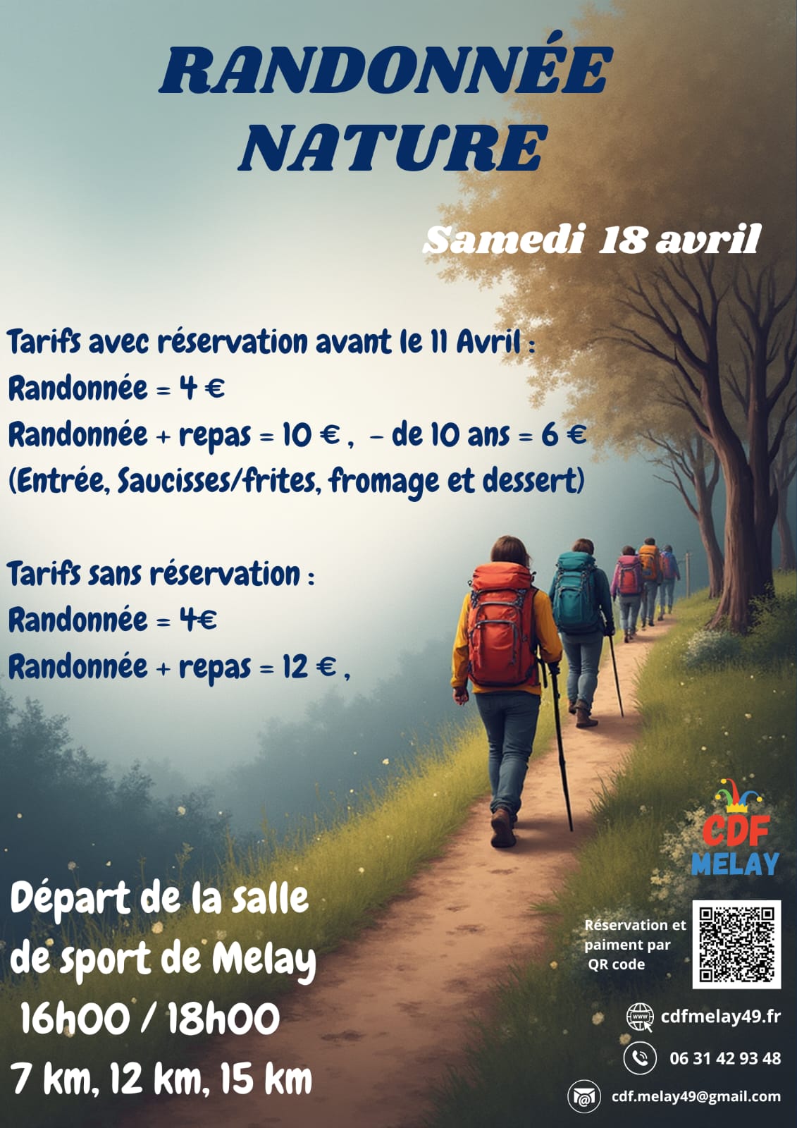 Le Comité des Fêtes de Melay vous donne rendez-vous le vendredi 18 avril pour une randonnée conviviale et gourmande, ouverte à tous ! 😄